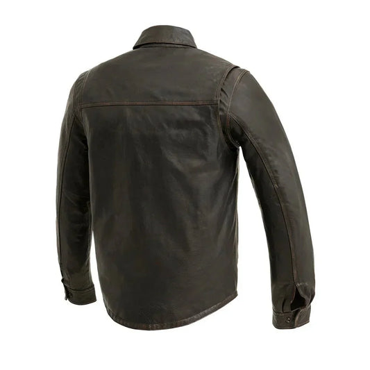 Men’s Leather Motorcycle Riding Overshirt with 3/4 Sleeves